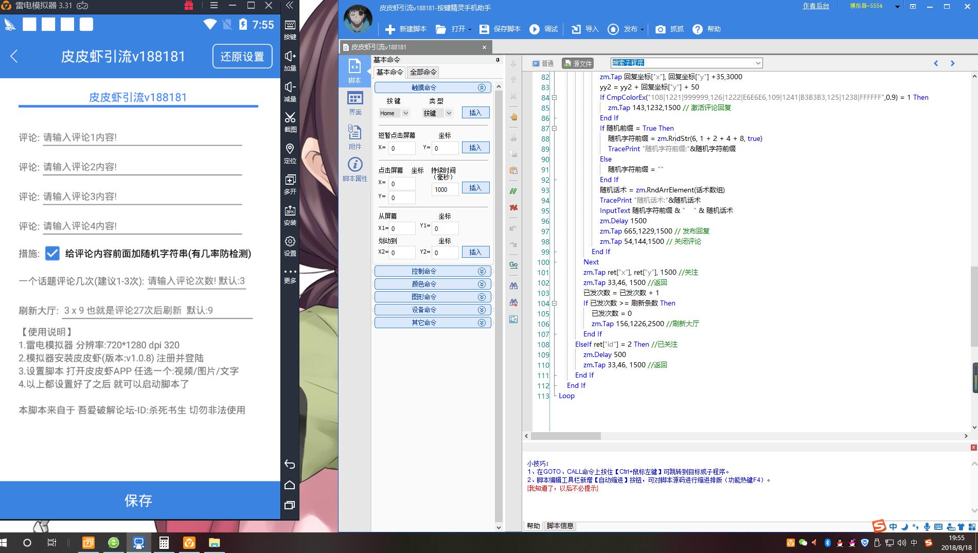 ![图片[2]-【引流营销必备】皮皮虾引流脚本/多方位智能评论/话术随机定义/-木叔脚本](https://mushu.me/wp-content/uploads/2018/08/测试图.jpg)
