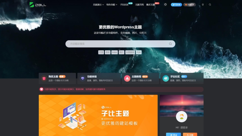 子比主题是一个基于WordPress的社区论坛主题,提供文章、用户、商城、微信等多种功能扩展。子比主题采用简约优雅的设计风格搭配强大的商城功能以及易用的模块化配置,成为更加适合中大型网站的WP模板 。
